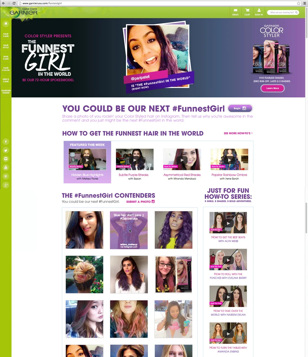 For a product this much fun, we'll need a really fun spokesperson. We need The Funnest Girl in the World! But, like the product, her reign will be temporary. Every 72 hours, Garnier selects a the next Funnest Girl in the World.